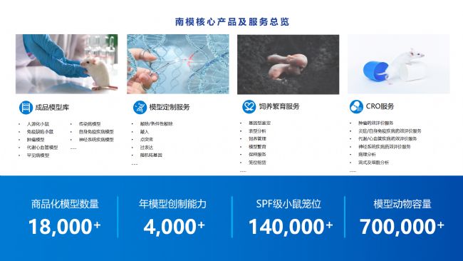 上海南方模式生物科技股份有限公司(Shanghai Model Organisms Center, Inc.,簡稱"南模生物"),成立于2000年9月,是一家上交所科創板上市高科技生物公司(股票代碼:688265),始終以編輯基因、解碼生命為己任,專注于模式生物領域,打造了以基因修飾動物模型研發為核心,涵蓋多物種模型構建、飼養繁育、表型分析、藥物臨床前評價等多個技術平臺,致力于為全球高校、科研院所、制藥企業等客戶提供全方位、一體化的基因修飾動物模型產品解決方案。