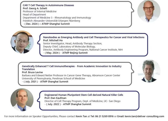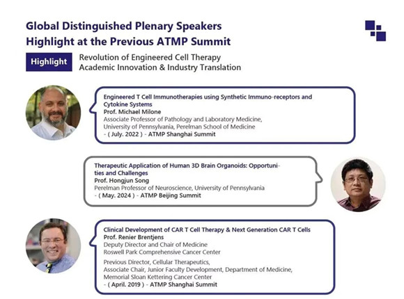 近年來 ATMP2019-2025 匯聚了來自美國賓夕法尼亞大學佩雷爾曼醫學院、帕克癌癥免疫療法研究所、紀念斯隆-凱特琳癌癥中心、MD 安德森癌癥中心、美國費城兒童醫院、加州大學圣地亞哥分校、美國國立癌癥研究所、美國國立衛生研究院、 英國倫敦大學圣喬治醫院,新加坡科技研究局、日本京都大學iPS 細胞研究所、美國食品藥品監督管理局以及德國埃爾朗根-紐倫堡大學等眾多國際先進療法先驅,中國頂尖學府、科研院所以及知名產業界嘉賓的共同參與。由