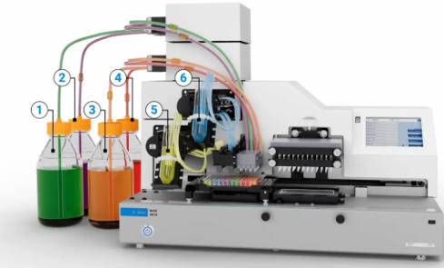 3. 多達 6 個獨立的分液器管路,意味著在單個程序中可以加載多達 6 種不同的試劑并進行獨立分液,無需聯用多個分液器。