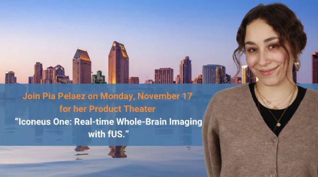 除了豐富的科學議程,今年我們的一大亮點是一場"產品劇場"研討會,題為“Iconeus One:利用功能性超聲技術開創實時全腦成像新時代”,由 ICONEUS 的產品應用專家Pia Pelaez 主持。