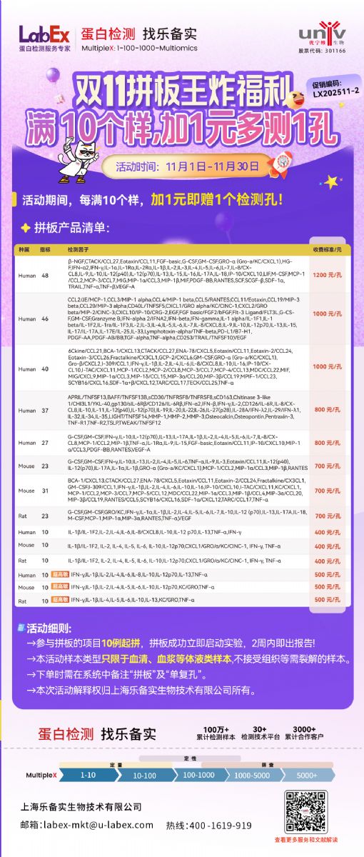 樂備實蛋白檢測拼板、趨化因子檢測多重年終福利開啟