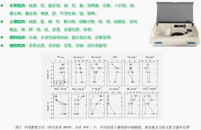 研究團隊通過 2 mol/L KCl 溶液提取土壤中的有效氮(NO₃⁻和 NH₄⁺是植物可直接吸收的主要無機氮形態),再利用 EasyChem 全自動化學分析儀對提取物中的兩種氮素濃度進行精準檢測,為系統對比 “再生水(RWW)灌溉” 與 “井水(WW)灌溉” 對土壤氮素營養狀況的影響提供了關鍵數據支撐。