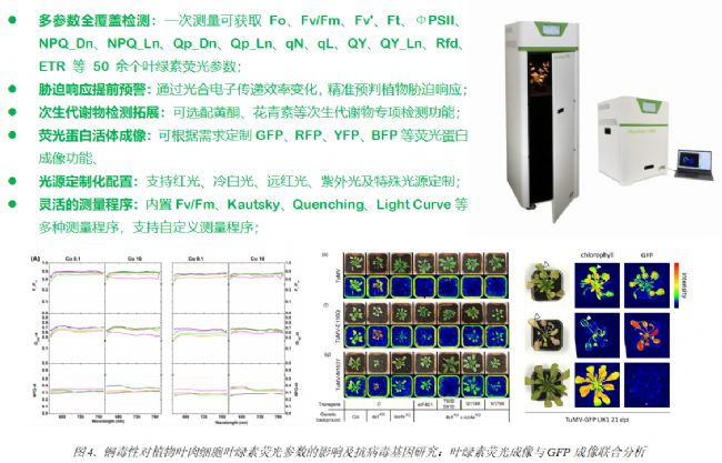 法國國家農業科學研究院在馬鈴薯 Y 病毒組的抗病基因研究中,通過多種基因編輯處理方案,系統驗證了抗病毒分子機制。研究人員利用 FluorCam 葉綠素熒光成像技術反映病毒對植物光合系統的損傷,同步獲取植物光合表型信息;同時借助其 GFP 熒光蛋白成像功能,實現對病毒感染面積與積累量的定量分析,直觀揭示了不同基因功能對擬南芥病毒抗性的影響。