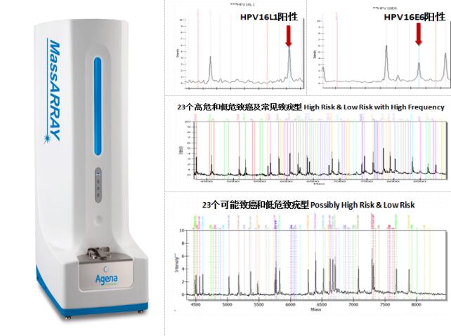 檢測原理:采用PCR_MS質譜法,對單一標本分兩管檢測45種HPV DNA亞型。對9種高危型16,18,26,31,45,51,53,58和73型陽性樣本,可以進行HPV致癌蛋白基因 E6 mRNA活性檢測。