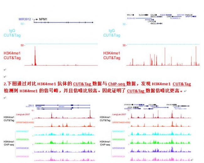 1.H3K4me1抗體的CUT&Tag數據顯示,與IgG對照組相比,H3K4me1 CUT&Tag檢測到了H3K4me1的信號峰,且信噪比較高。