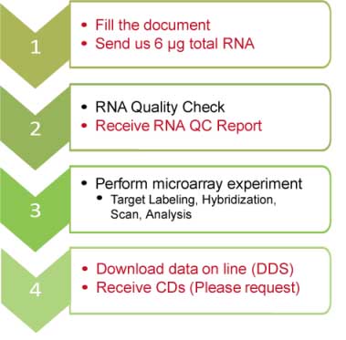 我們同時也提供芯片相關的服務,包括芯片客制化設計與生產 (Array ODM and OEM) 、RNA 萃取、基因表現檢測服務 (Gene Expression Profiling Service) 與芯片數據分析服務 (OneArray Analysis Consulting Service)。