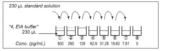 4. 標準品的稀釋:準備8個試管用于標準品的稀釋,每管加入230ul的EIA緩沖液