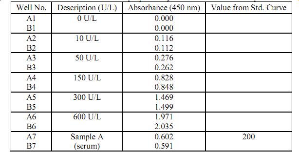 2. 從標準曲線上可得到樣品中胰淀粉酶的值