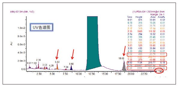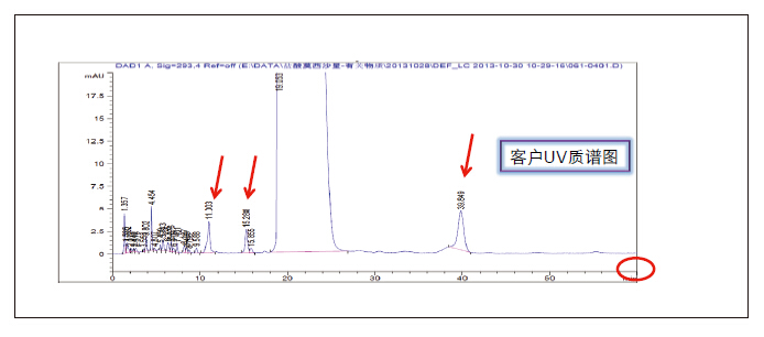 圖3. 客戶使用HPLC得到的紫外譜圖