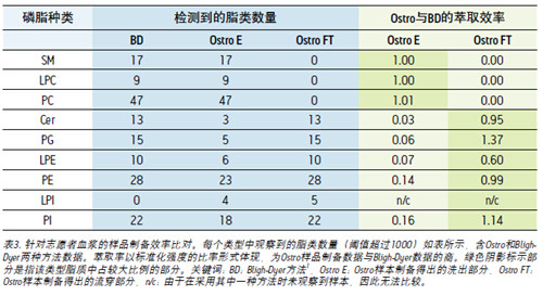 對比使用Ostro樣品制備和Bligh-Dyer方法的萃取率