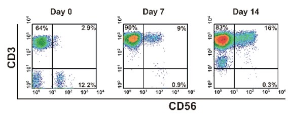 2.5.2 流式細胞儀檢測細胞表面CD3、CD8、CD56等分子的表達:CD3+CD56+細胞的比例應在20%以上。
