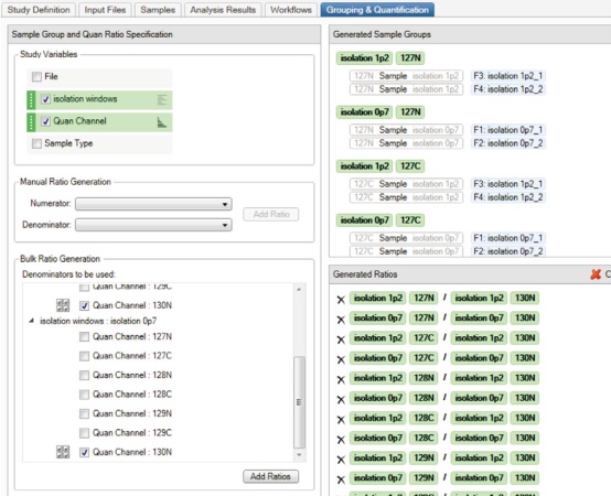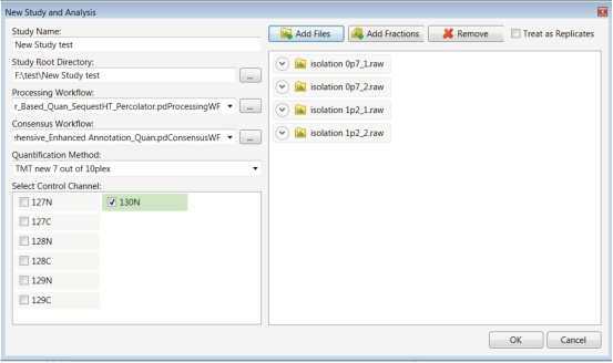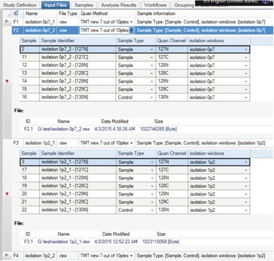 6. 導入要處理的 .raw 文件。圖 2 示例中導入了采用兩個不同隔離窗口設置的四份平行分析產生的原始數據文件。