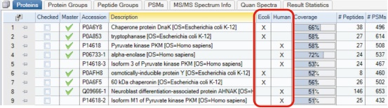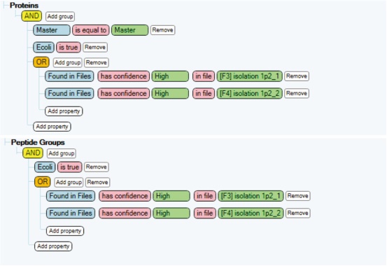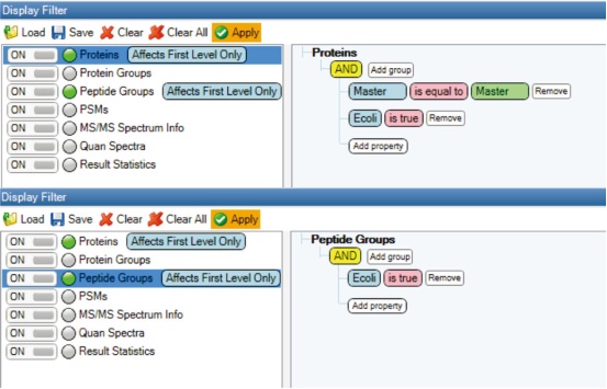 4. 進入工具欄 View 條目,選擇 Display Filter。從全部文件中過濾所有被鑒定為源于 E. coli 的蛋白質組和肽段組(圖 9)。