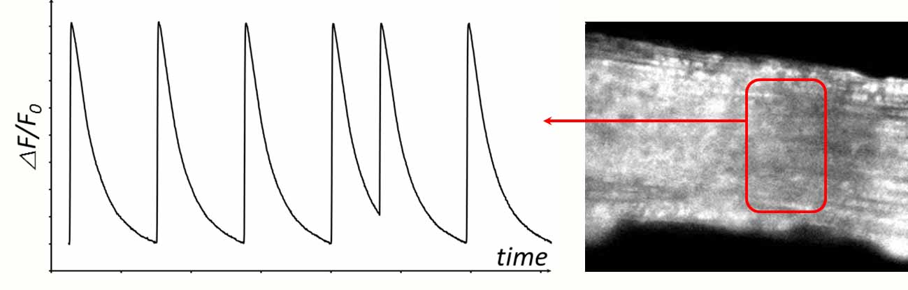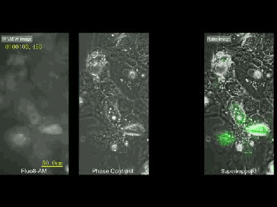 心肌細(xì)胞鈣離子濃度隨時(shí)間的變化 200幀/秒 放慢10倍