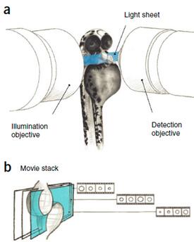 1、light-sheet光片照明因其可與激光共聚焦相媲美的z軸分辨率和比激光共聚焦更快的成像速度在一些模式動(dòng)物器官和胚胎的活體成像中的具有顯著優(yōu)勢(shì)。flash4.0相機(jī)的高幀速成像能力配合片狀光的掃描能夠?qū)崿F(xiàn)迅速對(duì)厚樣品進(jìn)行z-stack掃描成像,并重建其3d結(jié)構(gòu)。這種方法特別適合拍攝組織器官高速變化的情況(如心臟跳動(dòng))。