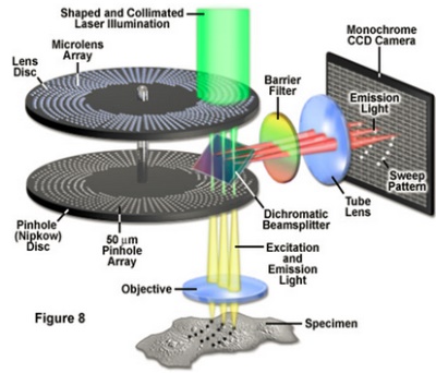 2、spinning disk共聚焦作為一種很成熟的共聚焦成像手段,能夠提供點(diǎn)掃描共聚焦無(wú)法比擬的高速成像能力。這一高速成像能力除了要?dú)w功于nipkow轉(zhuǎn)盤帶來(lái)的多針孔外,還需要scmos的高速拍攝性能相配合,從而在video-rate下得到與點(diǎn)掃描共聚焦相當(dāng)?shù)母叻直鎴D片。