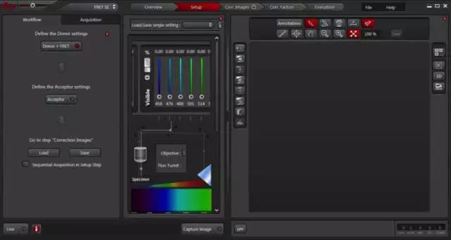 LAS X軟件中提供了專門的FRET技術操作向導,可分別通過FRET-AB(acceptor photo-bleaching)和FRET-SE(sensitizedemission)兩種方法對樣本進行檢測,用戶只需根據操作向導一步步操作就可輕松得到樣本的FRET數據。