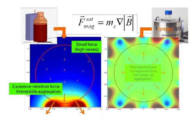 圖3:磁力分布圖,傳統磁鐵(左),先進從生物磁分離系統(右)