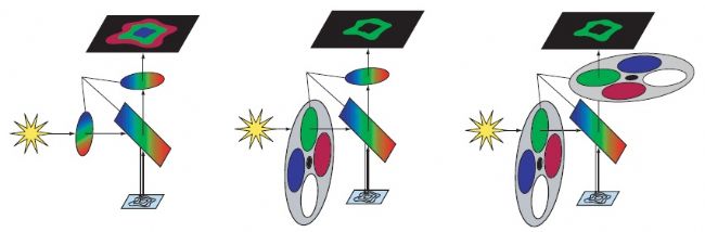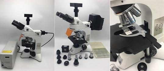 熒光顯微鏡的基本構造通常由普通光學顯微鏡再加一些如熒光光源 、激發濾片、雙色束分離器及阻斷濾片等附件的基礎上組成。同時采用的熒光光源一般為超高壓汞燈,它可發出各種波長的光,且每種熒光物質都會有一個產生最強熒光的激發光波長 ,這時需加置激發濾片,通常有紫外、紫色、藍色及綠色激發濾片,僅需使一定波長的激發光透過并照射到標本上,并將其他光都吸收掉。