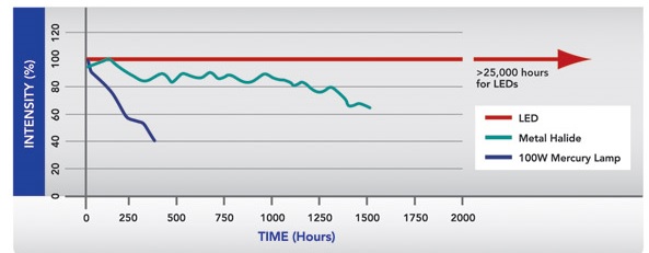 ·壽命長,衰減慢,通常不需要更換燈泡及校準