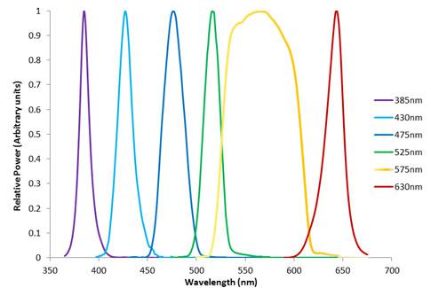 5.LED單波長熒光光源,此類光源屬于高端的熒光光源,價格昂貴,通常需要20000美元左右哦。采用單波長LED模塊設計,輸出單個波長的熒光譜線,例如365nm/488nm/561nm/633nm, 類似于激光光源。此類優點突出;壽命長,采用光電快速切換,有效避免物理震動。LED單模塊光源的單色性好,極大的降低了白光光源的背景噪音,高效激發。程序控制適合整合到高端的成像系統中。例如:EXCELITAS公司X-CITE TURBO系統,蔡司公司的Colibri LED光源即屬于此類代表,壽命普遍在幾千個小時。