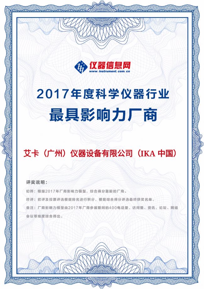 會上,各行業專家帶來了高屋建瓴的學術報告,精彩紛呈,尤其是REALWORLD ONE以其酷炫的VR/AR虛擬現實及增強現實技術的展示,令人興奮不已。此外,“儀器及檢測風云榜”頒發的多項行業大獎,備受業內同仁矚目。其中,在2017年度科學儀器行業“最具影響力國外儀器廠商”評選中,IKA憑借創新和高端品質榮譽上榜,一同入選的還有安捷倫、島津、賽默飛等國外十家實力廠商。