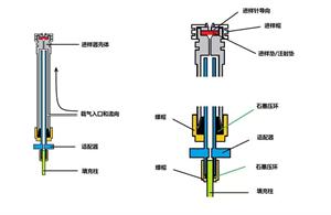 步驟五:將色譜柱連于檢測器上其安裝和所需注意的事項與以上色譜柱與進樣口聯接(步驟3)部分所講述的大致相同。安裝時要注意色譜柱末端要高于尾吹點,或按照色譜儀說明書安裝。