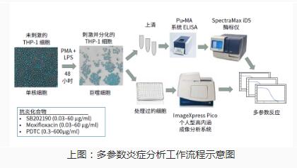 在這篇應用介紹中我們提出了多參數細胞分析的結果,使用Molecular Devices ImageXpress Pico個人性高內涵成像分析系統進行表型成像分析,考察巨噬細胞形成;以及SpectraMax iD5多功能酶標儀進行小體積ELISA 分析細胞因子的分泌,評估藥理學化合物對炎癥反應的影響。結果發現,通過對三種不同炎癥標志物對三種抗炎化合物的反應進行表征分析。觀察到的行為差異與已發表的行為機制一致。