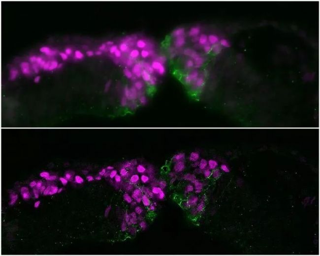 ▲ 圖 5.上圖為普通寬場顯微鏡,下圖為 THUNDER 結(jié)果