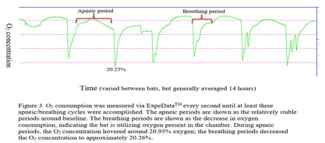 其它蝙蝠的高代謝率研究案例見O'Mara M T , Wikelski M , Voigt C C , et al. Cyclic bouts of extreme bradycardia counteract the high metabolism of frugivorous bats[J]. Elife, 2017, 6:e26686.