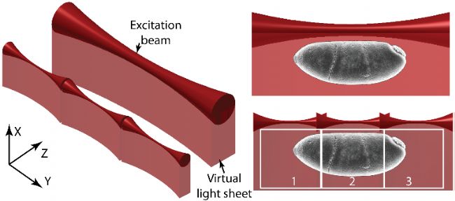 圖4 高的空間分辨率下,平鋪光片顯微鏡的成像模式