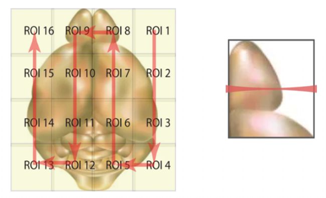 光片顯微鏡對一個大的樣品組織進行三維成像時需要將樣本細分成多個ROI(Region of interest)成像。這種方式本質上是光片顯微鏡中空間分辨率和視場大小之間的折衷。