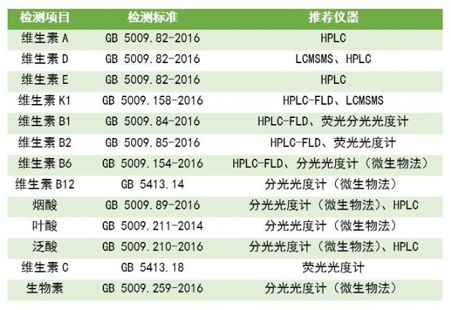 乳制品中其他維生素的檢測(cè)方法包括了液相色譜HPLC(或液質(zhì)聯(lián)用LCMSMS)、分光光度計(jì)、熒光光度計(jì)等儀器方法,這些可以為維生素B7/B9/B12的檢測(cè)提供一些參考。