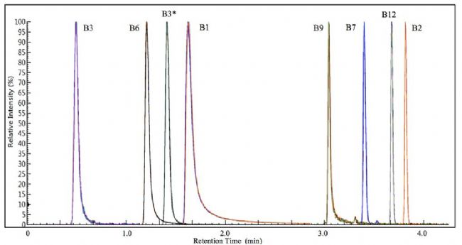 另外維生素B7/B9/B12,對(duì)熱和氧極其敏感,在加工、儲(chǔ)存中容易損失,且在樣品中濃度差異較大,在進(jìn)行樣品前處理時(shí)也是需要解決的難點(diǎn)。