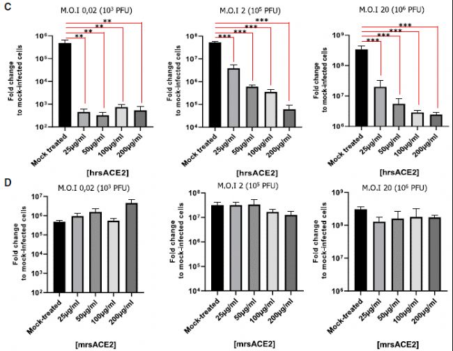圖3 hrsACE2抑制COVID-19病毒的細胞感染能力