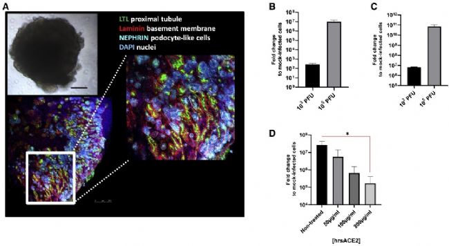 圖5 hrsACE2抑制COVID-19病毒感染腎臟類器官