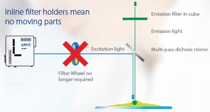 通過LED光源切換配合PINKEL濾片組代替熒光濾片轉盤切換通道