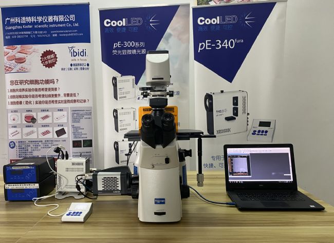 公司的pE-300ultra高性能LED光源,通過100%側分光口連接Retiga R1相機,搭配了德