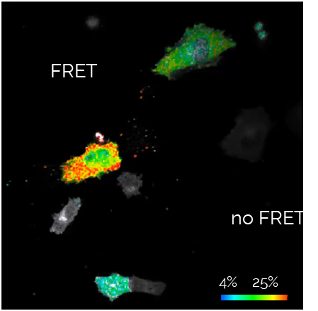 目前,FLIM技術越來越多的應用到生物學研究中,常見的應用有測定分子相互作用FLIM-FRET,環境感知和組分分離等,在活細胞中典型應用就是利用FLIM-FRET研究活細胞分子相互作用。