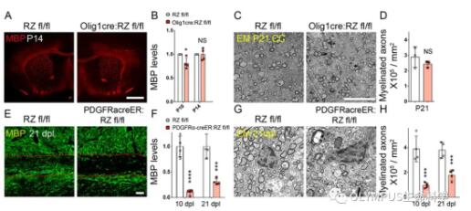 通過對比RNF43或ZNRF3在不同髓鞘損傷模型中的作用,作者證實RNF43僅對損傷再生過程中的OPC分化成熟有效應,而在發育過程中作用有限(圖3);而ZNRF3對發育和再生都無作用。提示RNF43可能是髓鞘再生中,調控OPC分化的特異分子。