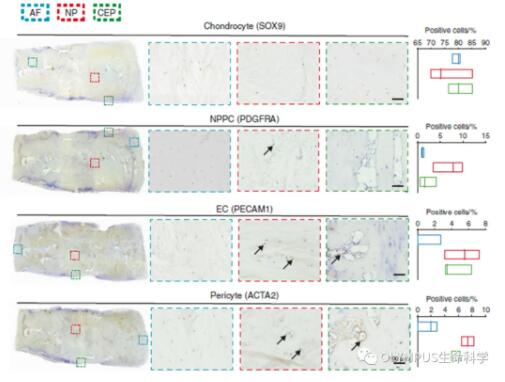 圖1:健康人椎間盤中AF(纖維環(huán))NP(髓核)CEP(軟骨終板)的免疫組化染色