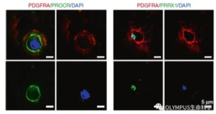圖2:免疫熒光染色顯示PDGFRA/PROCR/PRRX1在人類椎間盤細胞內(nèi)的共表達情況