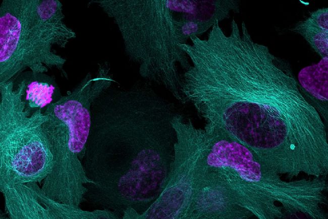 視頻:RPE 細胞分裂的 12 小時共聚焦延時視頻,細胞穩定表達 eGFP-tubulin(青色)和 iRFP-Histone H2B(品紅色)。由美國巴爾的摩約翰霍普金斯醫學院荷蘭實驗室 C. Gliech 提供。荷蘭實驗室致力于研究各種控制染色體精確分布的分子機制,以及有絲分裂錯誤在人體健康和疾病中起到的作用。
