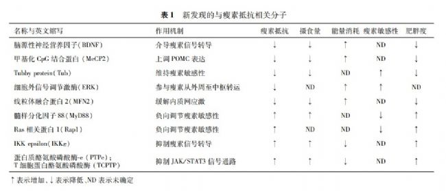 瘦素抵抗(leptin resistance)——表現為血清瘦素異常升高,但是機體對瘦素不敏感或者無反應。