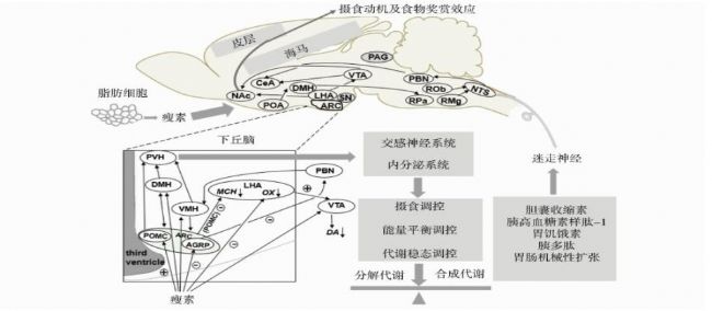 瘦素由肥胖基因編碼,脂肪細胞分泌。瘦素在降低食欲、減少能量攝入,以及降低血糖等方面發(fā)揮重要作用。
