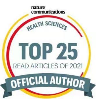 該篇研究論文最近被評為Nature Communications雜志2021年健康科學(xué)相關(guān)論文下載量前25名,在生物醫(yī)藥研究領(lǐng)域具有極高的影響力。