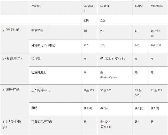 表:選擇Leica顯微鏡進(jìn)行檢查時(shí)要考慮的主要因素概述。