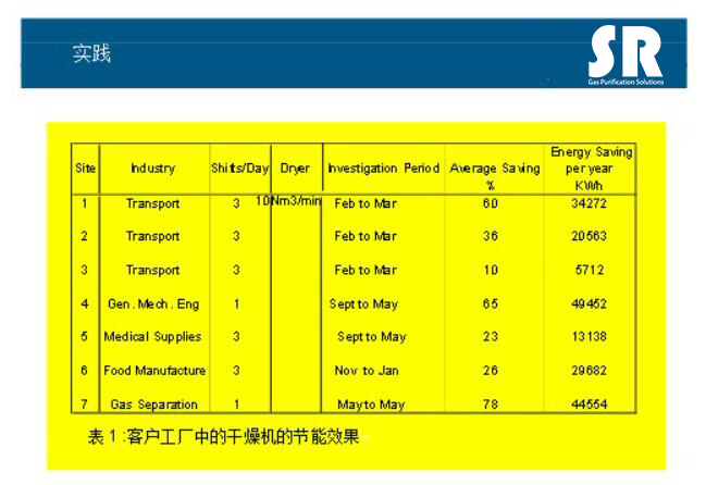事實上,從設備整個壽命周期的運行成本來說,前期的投資只是其中的非常小的一部分,更多的投入是設備的運行成本。以10Nm3/min的系統來計算,如果系統平均用氣量只有50%(在晚間和大多數時間系統的利用率實際低于30%),那么SR模塊化吸附式干燥機采用控制進氣溫度和露點切換的模式節約的能量至少可以達到60%。