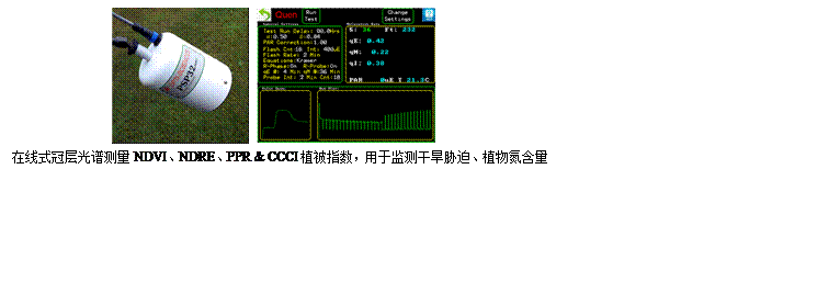 在線式監測葉綠素絕對含量(mg/m2)、冠層光譜NDVI、NDRE(歸一化紅邊植被指數)、PPR(植物色素比率指數)和CCCI(冠層葉綠素含量指數),評估植物抗旱性、植物氮含量、營養脅迫、病害脅迫。精確測量非光化學淬滅NPQ弛豫組分:葉黃素循環(qE)、葉綠體遷移(qM)、光抑制(qI)、狀態轉換(qT)用于評估環境脅迫條件下植物內在的生理調節能力,如耐干旱、耐高溫、耐寒冷、耐鹽堿能力。