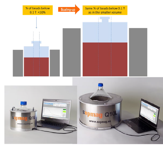 在研發的早期階段,分離過程通常是利用普通的磁力架進行小規模的開發。當產能在放大的過程中,如果分離條件沒有完全明確,研發階段磁珠所受磁力與放大后的新系統會不同,這一問題是導致磁珠和原料損耗、磁珠不可逆聚集問題發生的重要因素,通常需要昂貴且費時的再工程過程來解決這些問題。